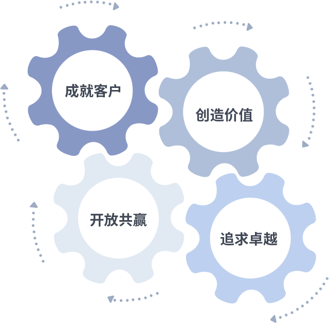 成就客户是一切决策的出发点,创造价值是衡量所有工作的标准,追求卓越是DG视讯做事做人的态度,开放共赢是DG视讯的格局也是最终的结果。价值观的齿轮环环相扣,推动着组织里的每个人不断向前。